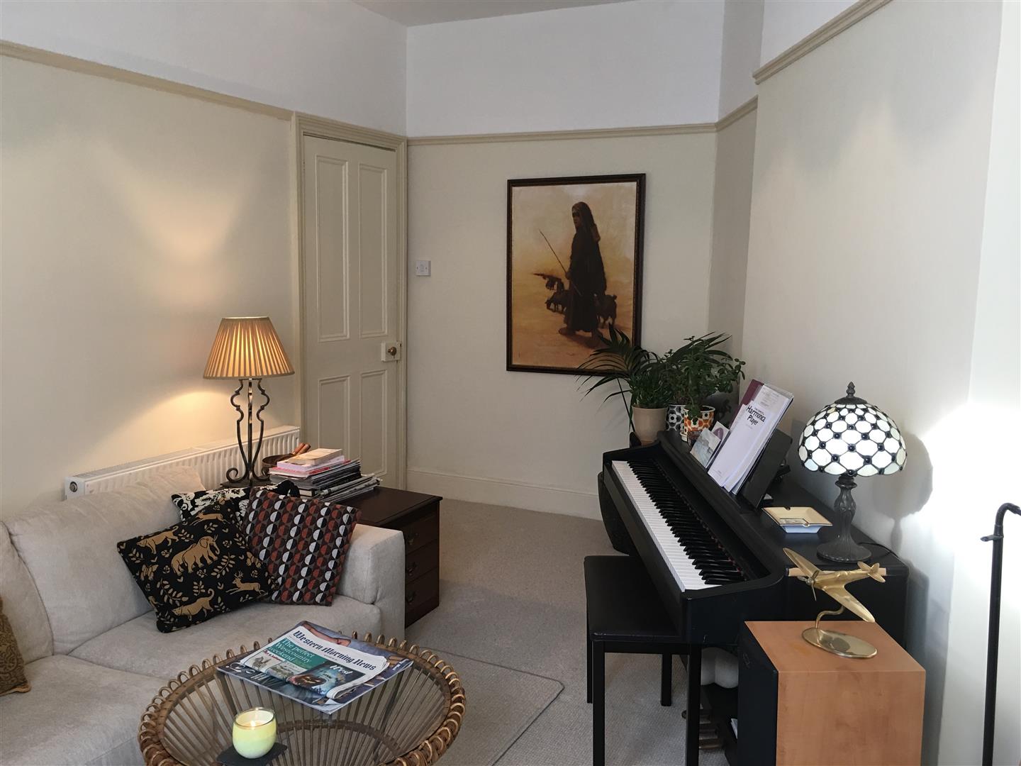 15'5" x 13'9" at widest point (4.70m x 4.19m) narrowing to 10'7" (3.20 m) - Original wooden fireplace surround (fire not in use), picture rail, fitted corner cupboard, wooden sash window to front, TV aerial point, radiator. Carpeted flooring.