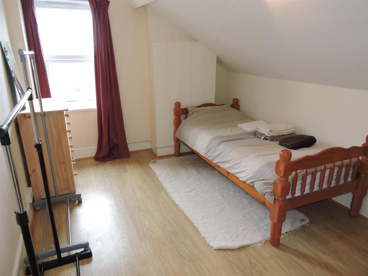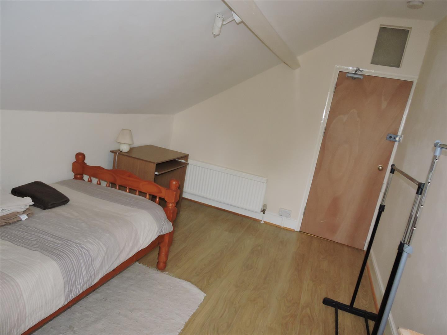 A top floor newly decorated, small double bedroom to let, with radiator, pendant light and spot light, double glazed window, wipe clean laminate flooring.